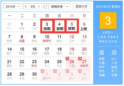 9月3日至5日(周四至周六)調休放假,就這么開心的多了一個小長假~