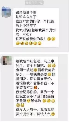 網(wǎng)友“快樂的人Ao”:我只想弱弱地問一句,你們討的錢有沒有買月餅糖果吃呢?如果沒有就是欺騙感情,以后別要了…