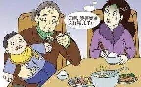 一些老人習慣將食物咀嚼后再喂給嬰幼兒,認為這樣更易消化。事實上,老人通?;加醒例l炎等口腔疾病,或者腸胃有問題,這些病癥都會產生相應的病菌存留在口腔內。如果孩子吃老人咀嚼過的食物,可能感染上這些病菌。