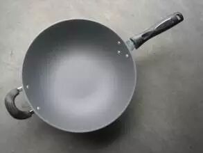 察看有無疵點。疵點主要有小凸起和小凹坑兩類,小凸起的凸起部分一般是鐵,對鍋的質量影響不大。如果凸起在鍋的凹面時,可用砂輪磨去,以免擋住鍋鏟。
