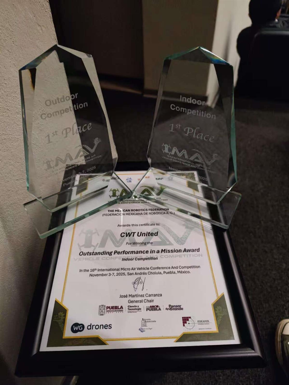 IMAV2025室內(nèi)與室外賽道冠軍獎(jiǎng)杯、證書