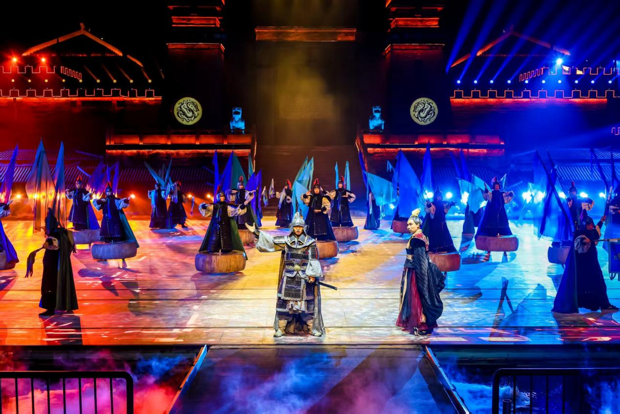 隨后,三國實景劇《赤壁·借東風》震撼上演。“對酒當歌,人生幾何……”曹操的雄渾吟誦穿越千年,周瑜點將的豪情、戰(zhàn)士出征的壯志、周喬惜別的深情、諸葛亮的神機妙算等情節(jié)環(huán)環(huán)相扣,將三國風云娓娓道來。
