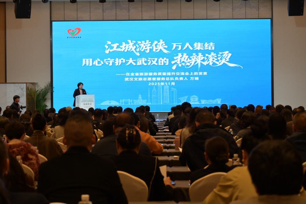 在11月13日湖北省文旅廳舉辦的2025年全省文化和旅游市場服務(wù)質(zhì)量提升活動暨市場管理培訓(xùn)班上,武漢文旅志愿者服務(wù)總隊負(fù)責(zé)人萬娟作交流發(fā)言,分享了“文明游武漢 品質(zhì)伴您行”志愿服務(wù)案例的實踐經(jīng)驗。