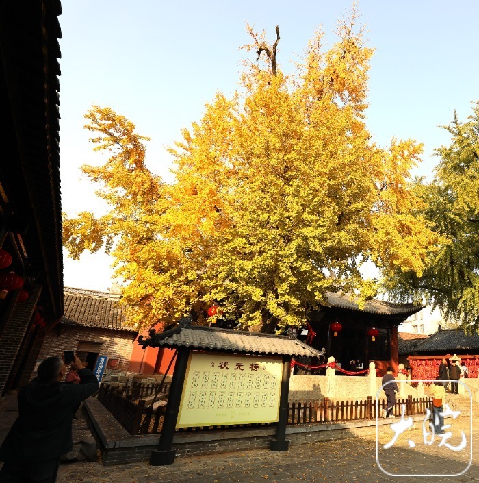 據(jù)了解,壽縣孔廟大成殿前的兩株銀杏樹樹齡有740多年,報(bào)恩禪寺大雄寶殿前的兩株銀杏樹樹齡有1300多年,清真寺內(nèi)的銀杏樹樹齡有600多年。銀杏葉在初冬的暖陽下熠熠生輝,綻放出迷人的光芒。
