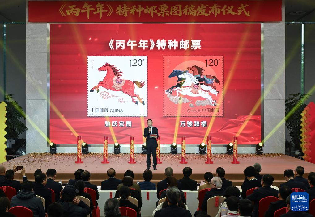 ??10月29日,中國郵政《丙午年》特種郵票圖稿發布儀式在北京舉行。此次生肖郵票圖稿是中國郵政生肖郵票首次面向全民征集圖稿,征集活動收到投稿作品440幅。圖稿由通過網絡公開招募的百余位大眾評委投票與專家評審相結合的方式最終誕生。