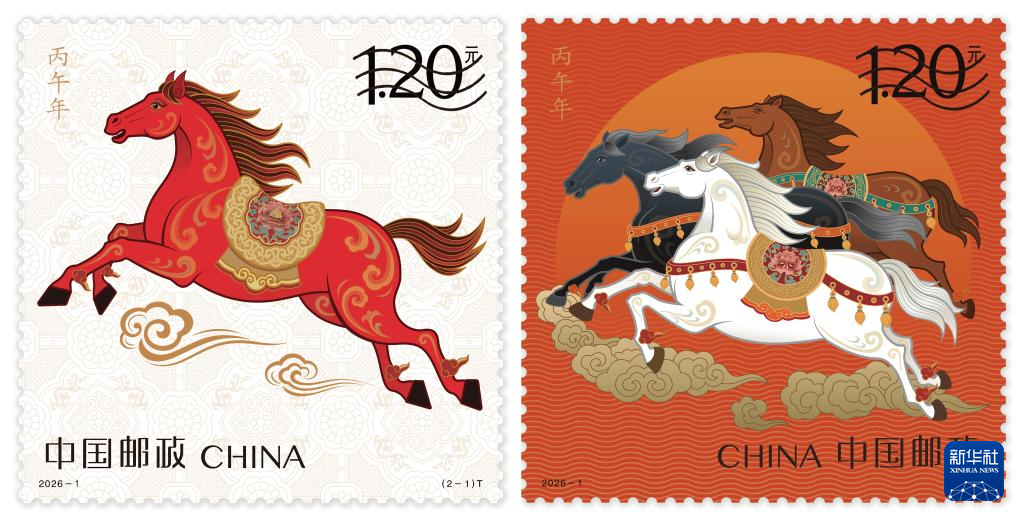 ??《丙午年》特種郵票由王紅衛、趙恩重設計。郵票第一枚圖名為“馳躍宏圖”,以“騰躍新時代”為核心意象。第二枚圖名為“萬駿臻福”,以“萬馬奔騰,馳騁千里”為核心意象。該套特種郵票將于2026年1月5日正式發售。