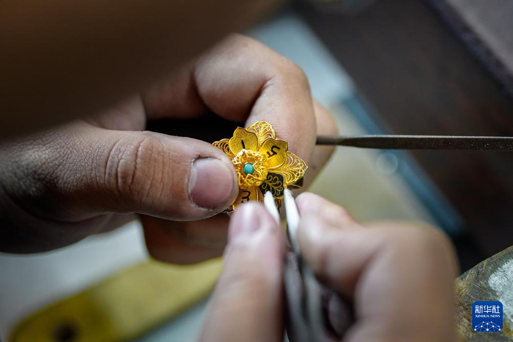 ??這項技藝的傳承,書寫著跌宕起伏的人生故事。李加汝作為烏銅走銀的第五代傳承人,早年曾在昆明岳家店鋪學藝,后因戰亂不得不中斷手藝。晚年無子的他,在金永才的悉心照料中看到了希望。時年29歲的金永才,自幼癡迷傳統金工技藝,18歲便開始學習金銀銅飾制作。他被李加汝收為弟子,系統繼承了這門瀕臨失傳的技藝。經年累月的刻苦鉆研,金永才終得真傳,成為國家級非遺傳承人。如今,在他的手中,烏黑的胎體上,山川有了魂魄,花鳥得了神韻,銀絲流轉處,是一個個被喚醒的天地。
