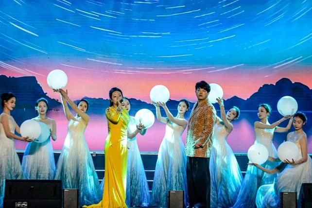 “歌詠皖山”篇章盡顯安徽民歌的婉轉(zhuǎn)風情。國家級非遺傳承人王鳳琴、余述凡的對唱《郎在高山唱山歌》展示了大別山風情。隨后,三峽演藝集團青年歌手熊子瑤、《我的中國心》全國總冠軍祝家家?guī)怼毒艃骸贰稅凼悄阄摇贰队成郊t》等經(jīng)典歌曲的全新演繹,以及潛山市民間文藝家協(xié)會副主席付群、安慶市岳西縣旅游形象大使梁彩云帶來的安慶地區(qū)代表性民歌《摘石榴》,無不令人沉醉。