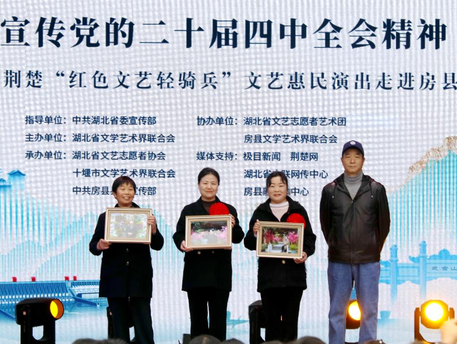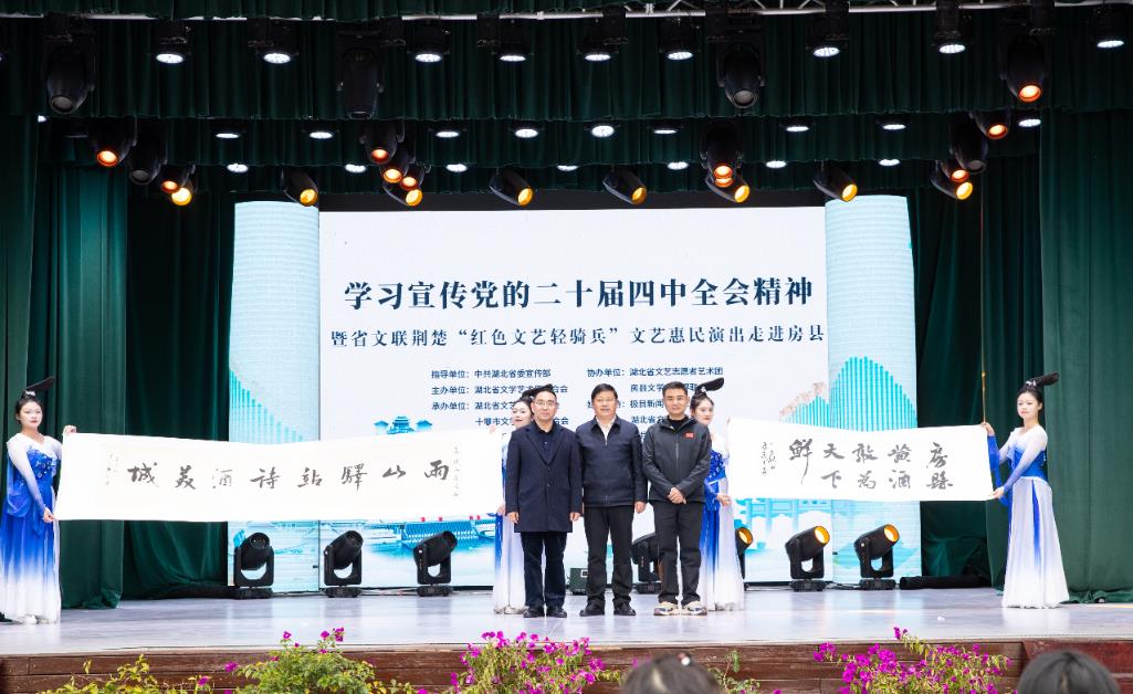 在全省深入學(xué)習(xí)宣傳貫徹黨的二十屆四中全會(huì)精神之際,2025年11月11日至12日,湖北省文聯(lián)組織文藝名家和文藝志愿者深入十堰市房縣舉辦學(xué)習(xí)宣傳黨的二十屆四中全會(huì)精神暨荊楚“紅色文藝輕騎兵”惠民演出、文藝宣講、培訓(xùn)輔導(dǎo)等活動(dòng)。