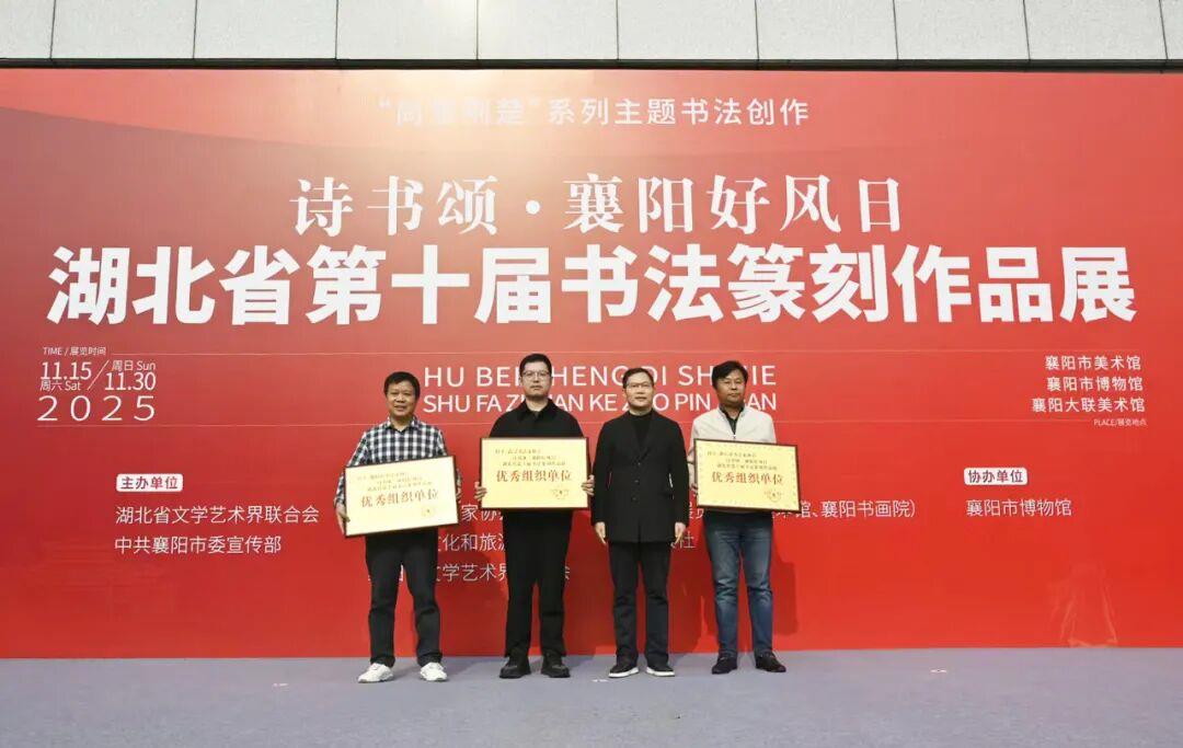 2025年11月15日,由湖北省文學藝術界聯合會、中共襄陽市委宣傳部主辦,湖北省書法家協會、襄陽市文化和旅游局、襄陽市文學藝術界聯合會承辦,襄陽市展覽館(市美術館、襄陽書畫院)、書法報社聯辦,襄陽市博物館、大聯美術館協辦的“詩書頌·襄陽好風日”湖北省第十屆書法篆刻作品展在襄陽市博物館開幕。