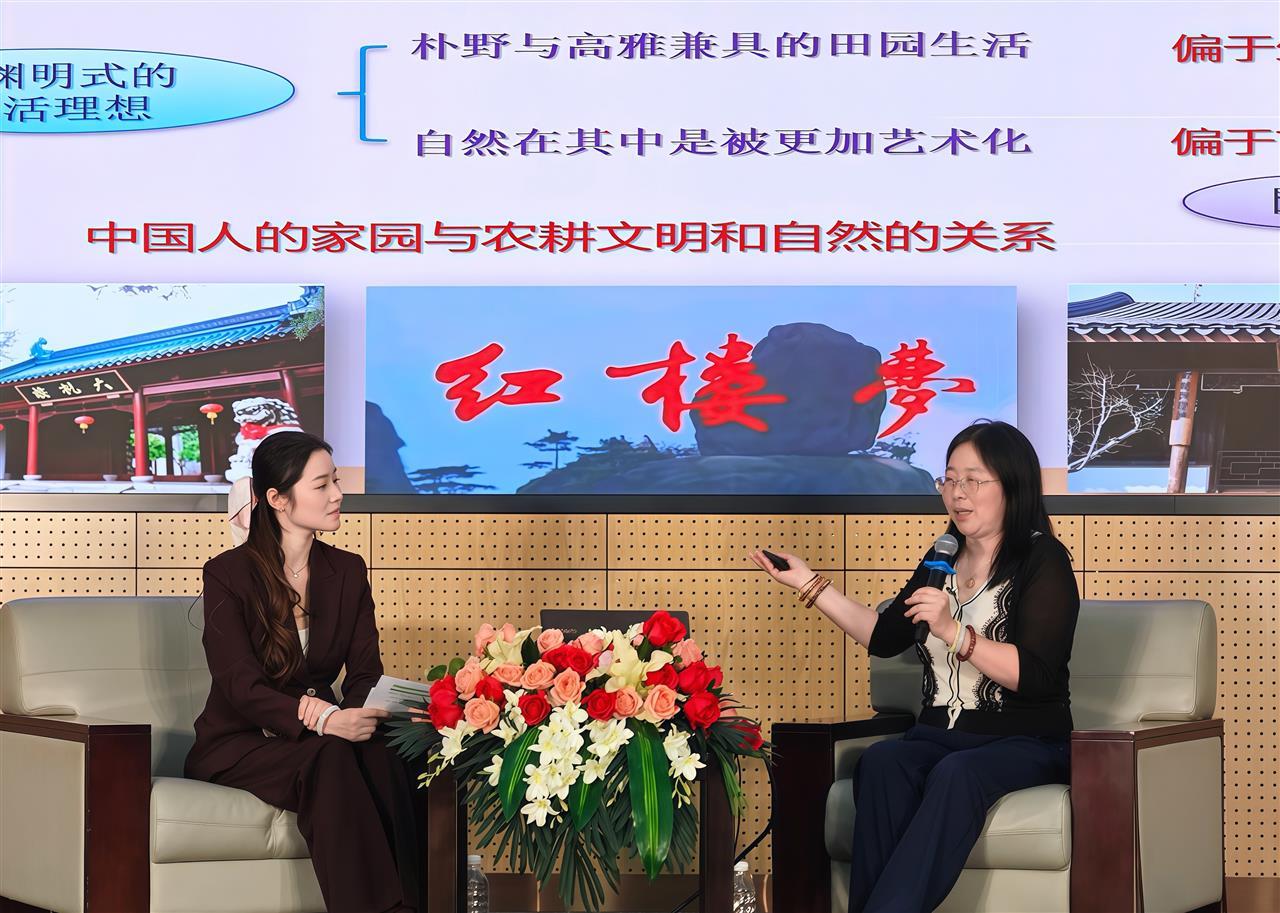 講座伊始,張玲以“提到菊花,您首先想到什么?”的問題切入,引出菊花“隱逸”“高潔”“長壽”的核心意象。徐敏教授則從學術角度,糾正了大眾對屈原《離騷》“夕餐秋菊之落英”的誤解,她指出,“落英”指的是初開的鮮嫩花瓣,“餐菊”是屈原滋養美德的精神儀式。徐敏還指出,南宋胡少淪曾將菊花的美德總結為“七美”,其審美根植于實用價值,《神農百草經》早有菊花藥用的記載。她以屈原、陶淵明、黃巢三位詩人為脈絡,解讀菊花意象的嬗變:屈原“餐菊”是滋養美德的精神儀式,陶淵明“采菊東籬下”讓菊花綁定隱逸理想,黃巢詩句的豪邁則與武漢英雄城底蘊遙相呼應。