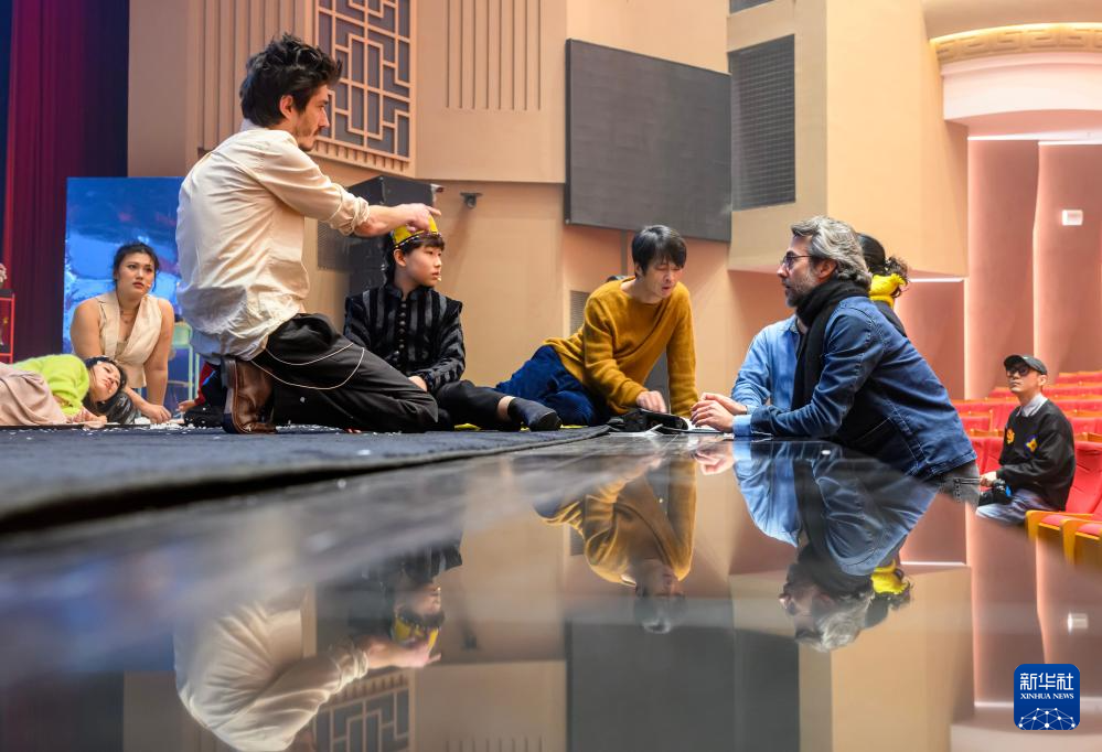 ??11月14日,導演讓·貝洛里尼(前右)指導演員排練。