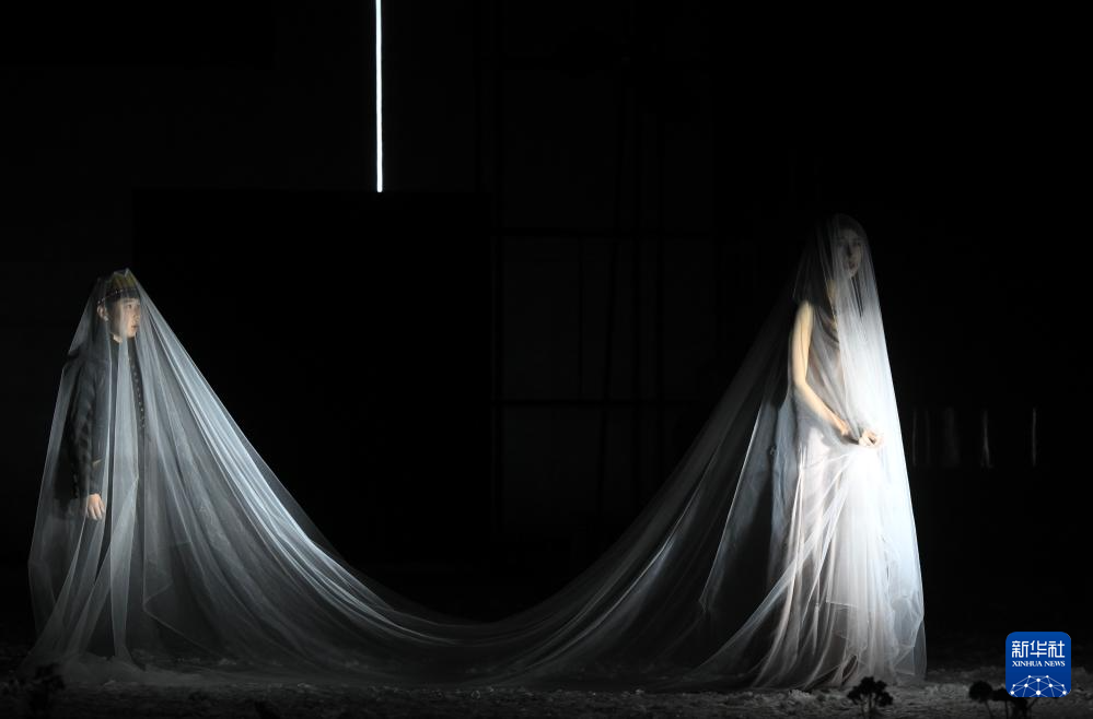 ??11月15日,演員薛飛(左)、凡清在音樂戲劇《小王子》中表演。