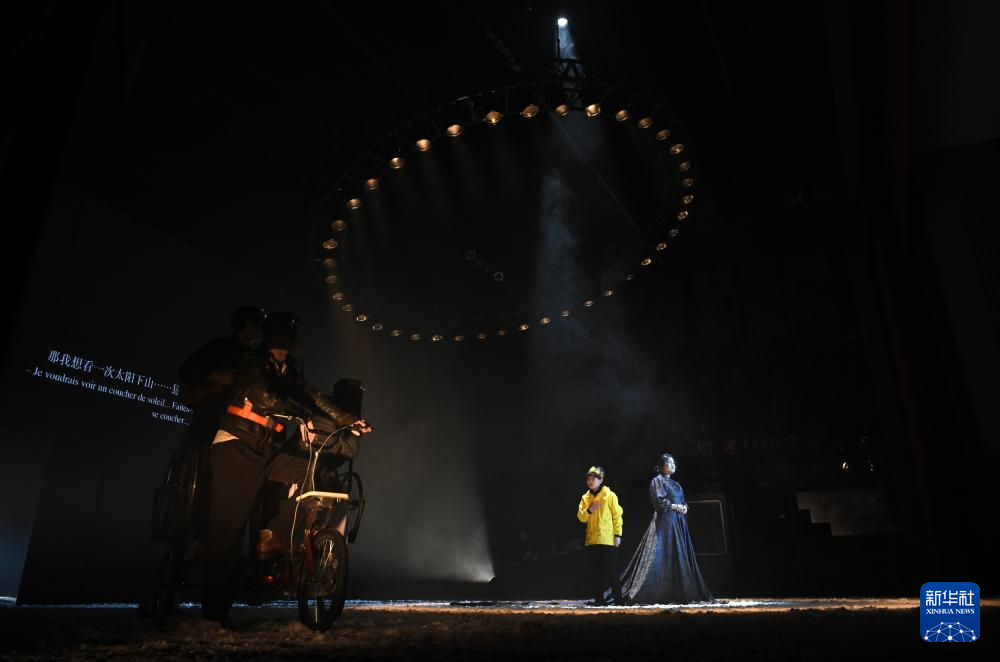 ??11月15日,演員李一辰(中)、金珍禾(左)、弗朗索瓦在音樂戲劇《小王子》中表演。