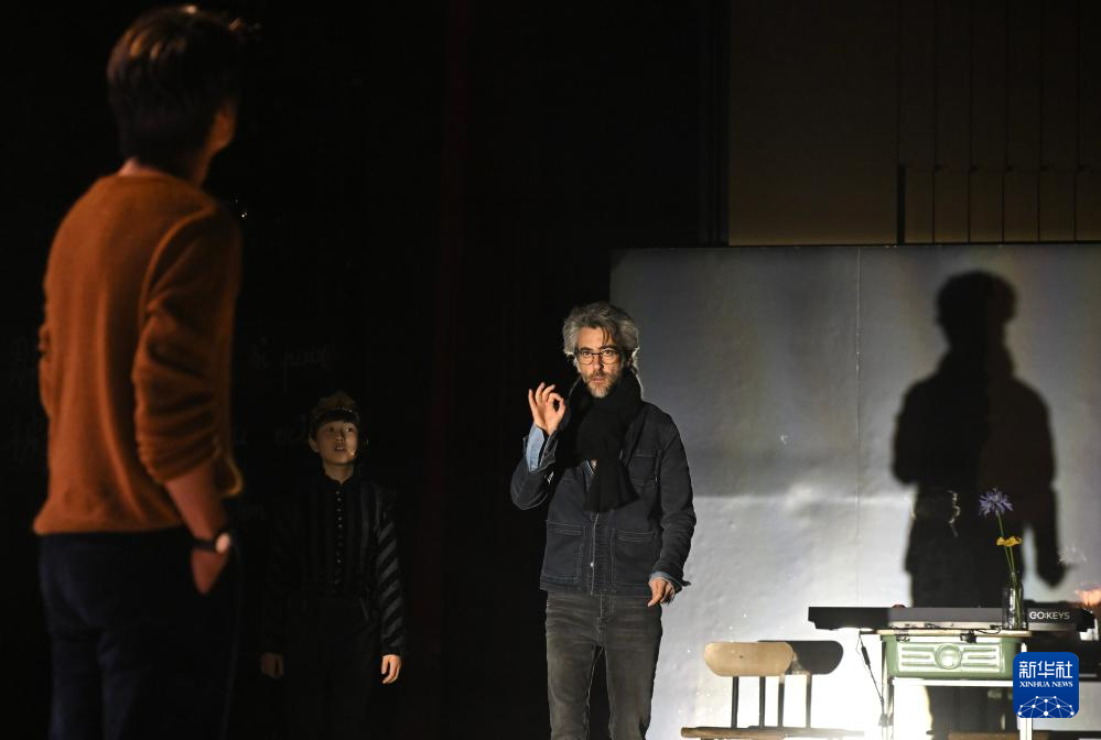 ??11月14日,導演讓·貝洛里尼(右)指導演員排練。