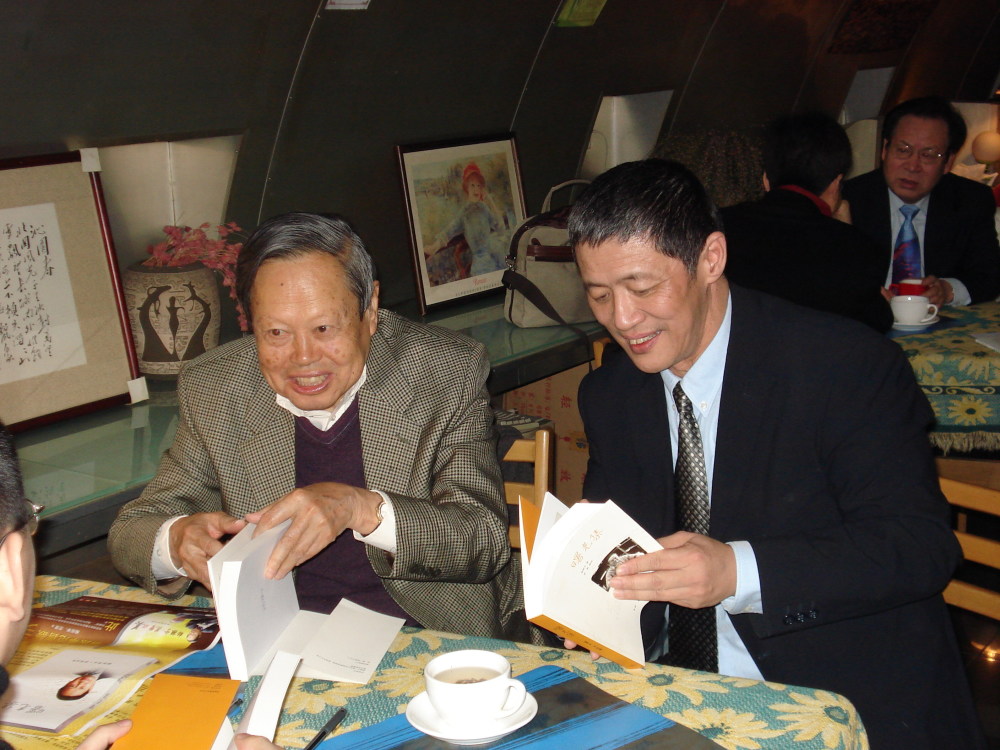 本文作者和楊振寧先生一起翻看《曙光集》新書(2008年)