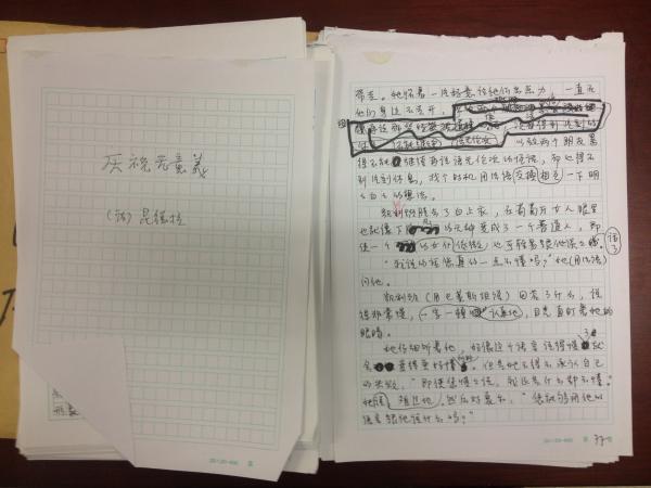 馬振騁翻譯《蒙田隨筆全集》全憑手寫,因?yàn)樗粫?huì)使用電腦打字。近2000頁的作文稿紙上,滿眼是不斷修改后留下的痕跡。馬振騁說,“我對(duì)自己的譯文還是滿意的,我想這樣一部書,在今后五年、十年也不會(huì)再有人去重譯了,畢竟這是件吃力不討好的事情,我是真的喜歡蒙田?!?/p>