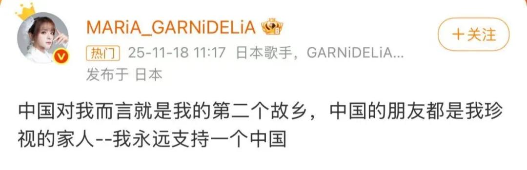 11月18日上午,日本歌手美依禮芽發(fā)文: