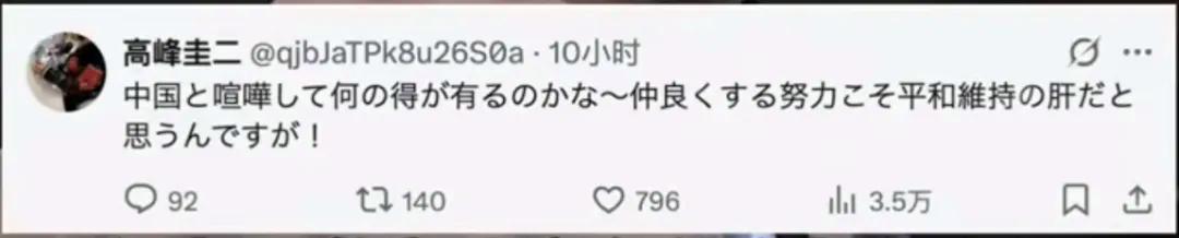 和中國發(fā)生沖突有什么好處呢?我覺得,唯有努力搞好關(guān)系,才是維護(hù)和平的關(guān)鍵呀!