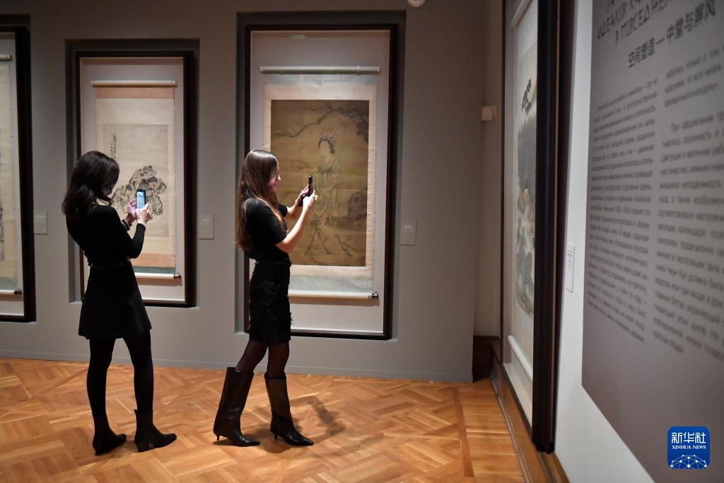 11月17日,在俄羅斯莫斯科特列季亞科夫畫廊,嘉賓參觀“心之所向:中國國家博物館藏14—19世紀中國書畫藝術”展覽。新華社發(亞歷山大攝)